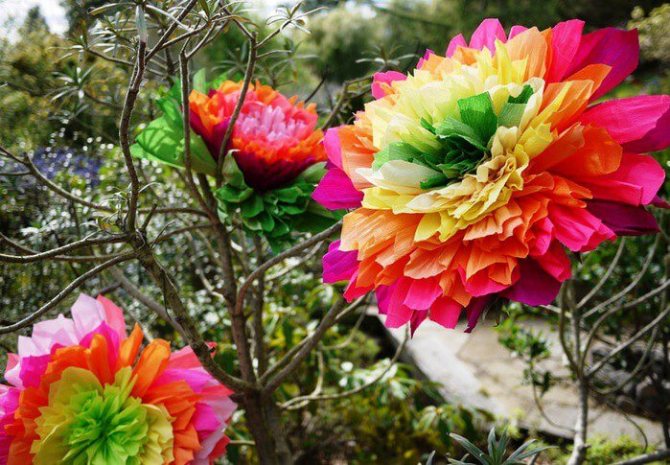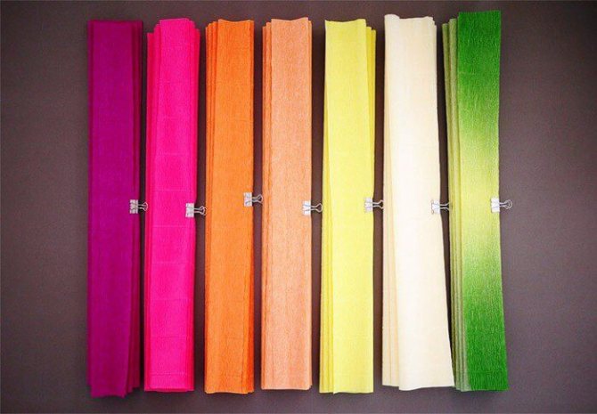 Давайте подробно рассмотрим, как сделать эти радужные огромные астры. Для их создания вы можете выбрать гофрированную или креповую бумагу. Главное, правильно определиться с оттенком. В дело пойдет полностью весь рулон.