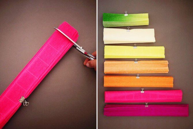 Теперь придаем каждой полоске нужный размер, убирайте по два сантиметра с каждой последующей заготовки.