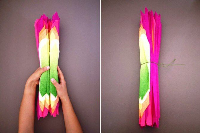 Сворачиваем гармошкой и фиксируем ее по середине.