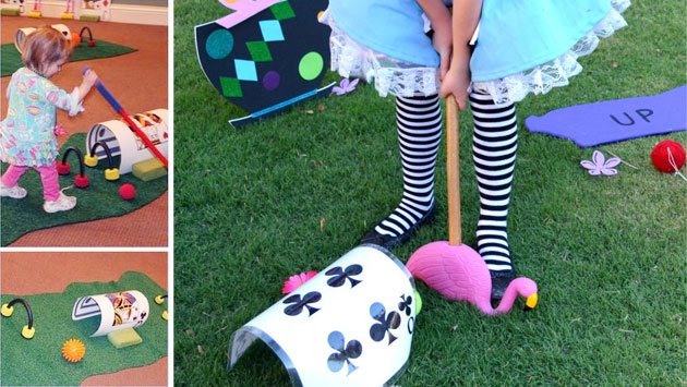 Не стоит бояться и уличных игр, например, крокета из сказки. И даже если вы забыли как в него играть, придумайте игру заново. Например, нужно попасть шариком через ворота в корзинку или что-то посложней.
