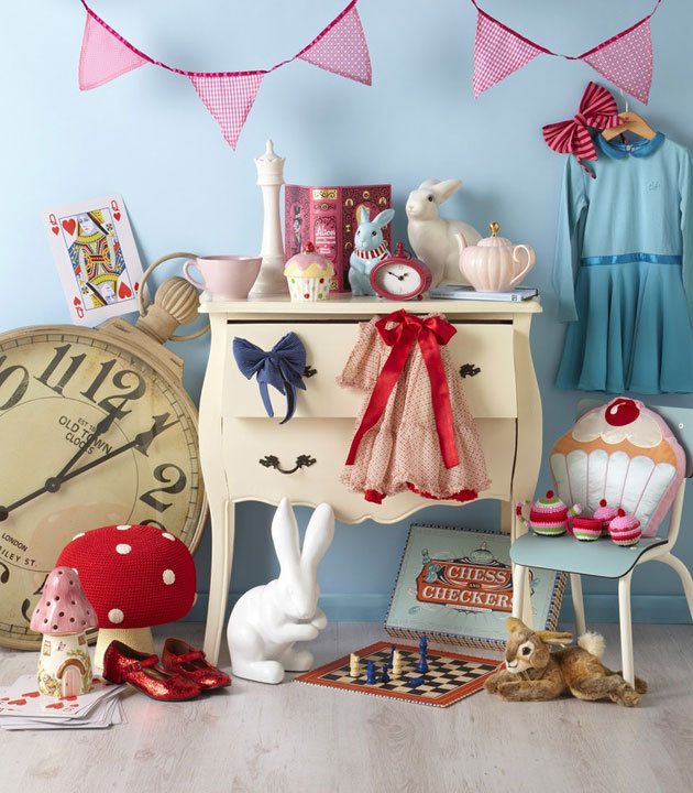 Оформить интерьер желательно в бело-красных тонах, это в очередной раз проведёт параллель с причудливой сказочной историей.