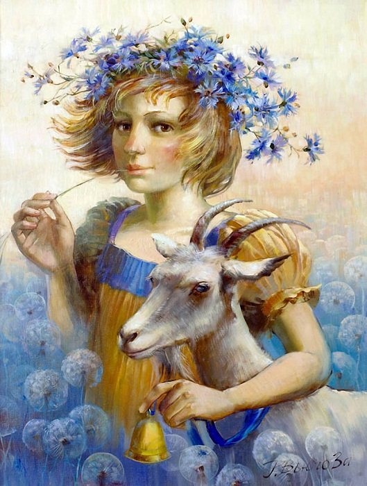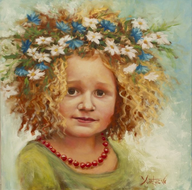 Елена Глушкова. Портрет девушки в венке из незабудок И у зарубежных художников таких портретов немало.