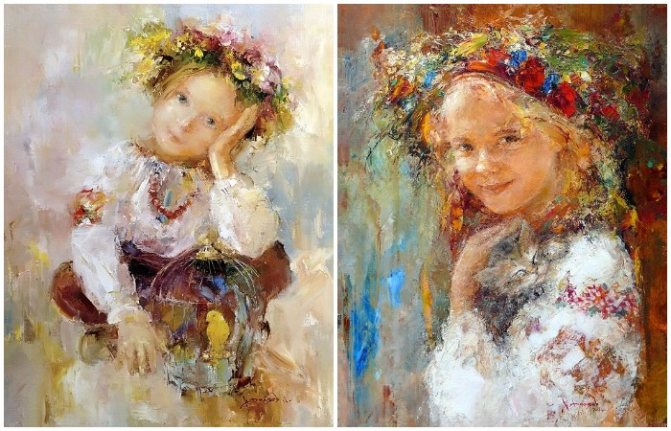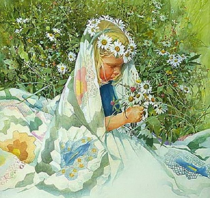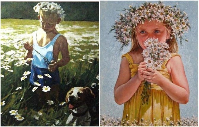 Художник Шишкин Андрей Алексеевич «Девичий венок» (ромашки и васильки) «Венок надежды» (васильки и полевой мак) «Венок любви» (ромашки, цветы яблони и вишни, хмель) «Венок преданности» (васильки и любисток) «Венок разлуки» (первоцвет и вереск) Венок из ромашек