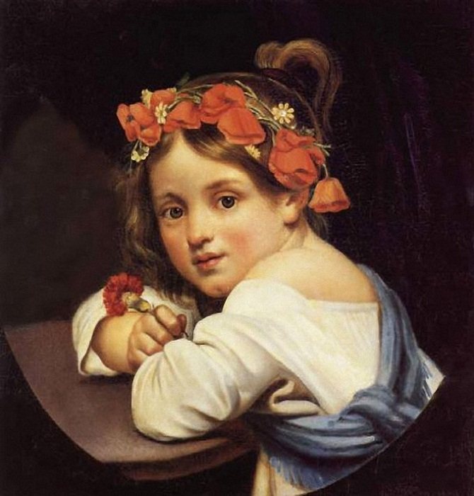 Орест Кипренский. Девочка в маковом венке с гвоздикой в руке (Мариучча). 1819 г.