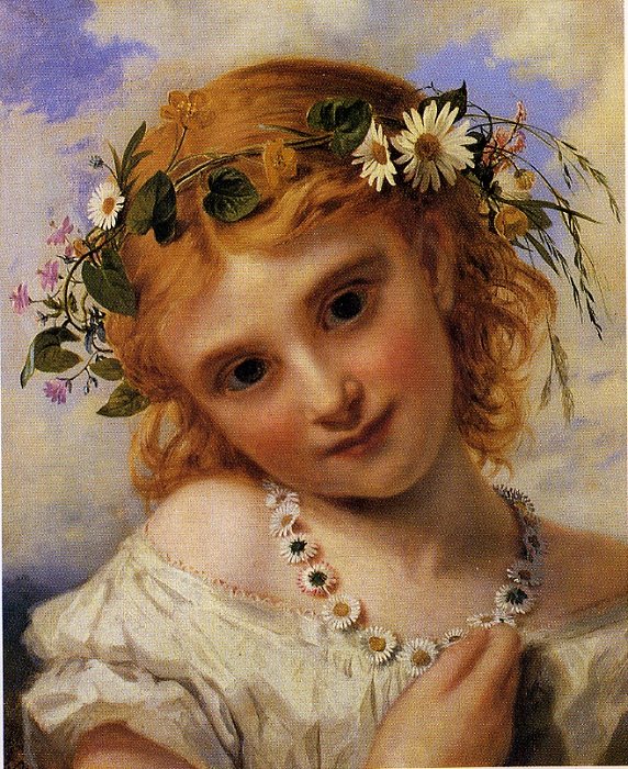 Девочка, плетущая венок. Вильям-Адольф Бугро, 1874 Венок из ромашек. Далекое детство, когда и забот-то особых не знаешь, и есть во дворе то особое место, в котором ты вечером часто мечтаешь. О том, как ты станешь красивой и умной, а ночью однажды появится рыцарь, и сердце забьется любовью безумной, и кажется все от нее уж не скрыться. Но это не так, а венок из ромашек всего лишь далекое детство и лето, когда ты за месяц становишься старше, а лето встречаешь с июньским рассветом,.. Сергей Глухов