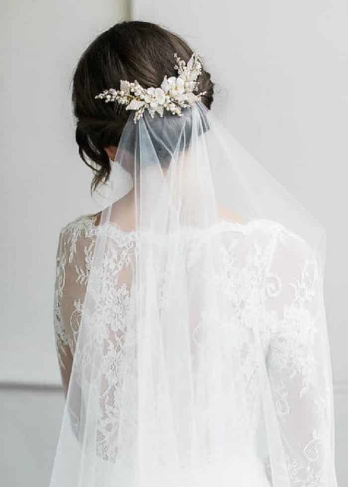 Пучок – это классическая свадебная причёска, актуальная во все времена. Хотя низкие свадебные гульки более традиционны, высокие пучки, поднятые с затылка к макушке, помогут вытянуть силуэт невысокой невесты. Кроме того, если вы расположите пучок на макушке, то сможете прикрепить свадебную фату внизу под ним. Оставьте несколько прядей у лица выпущенными, чтобы уравновесить массивную фату.
