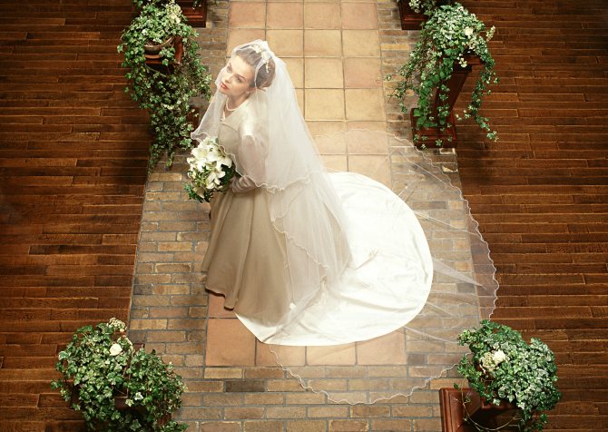 Считается, что фата должна накрывать голову невесты перед алтарем и быть с ней весь свадебный вечер.