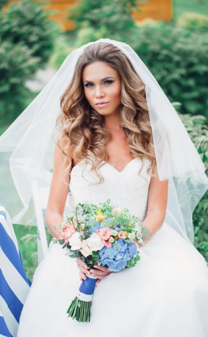 Уникальные идеи свадебных причесок с аксессуаром в виде фаты на распущенные волосы