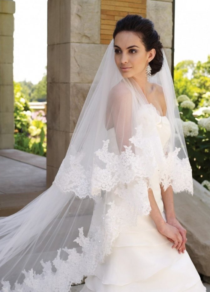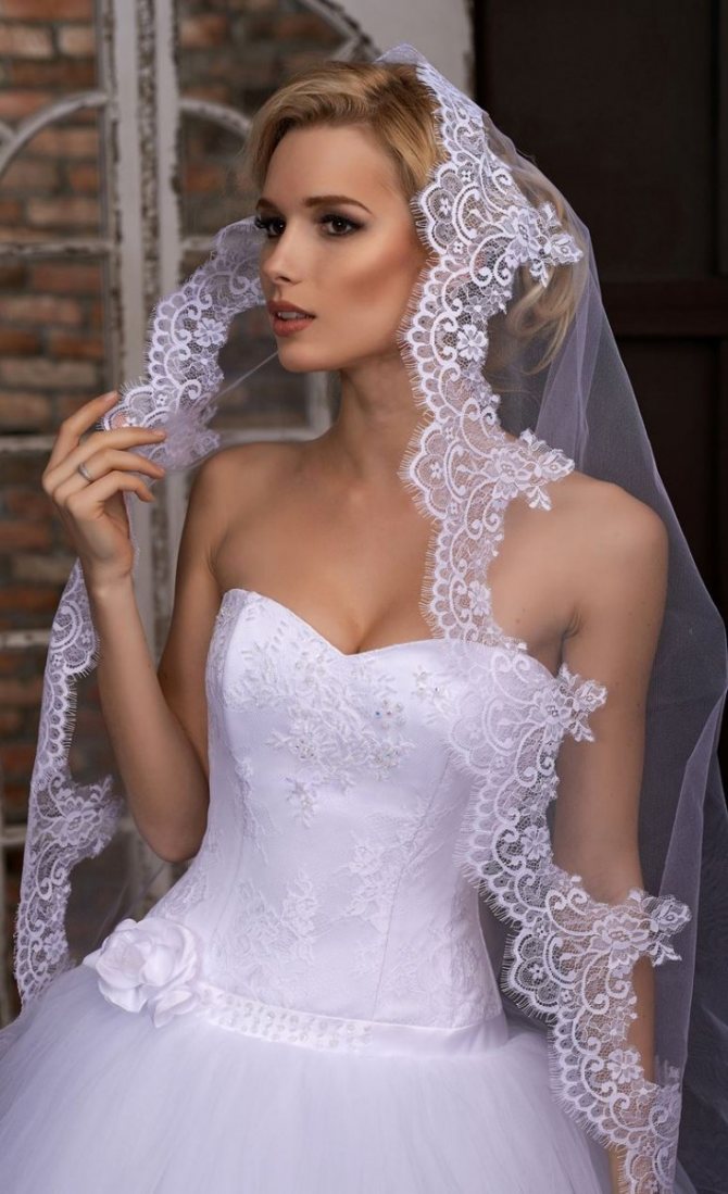 Кроме этого длинная фата тянет голову назад, а если на ней будет еще и кружево, то вес фаты удвоится.