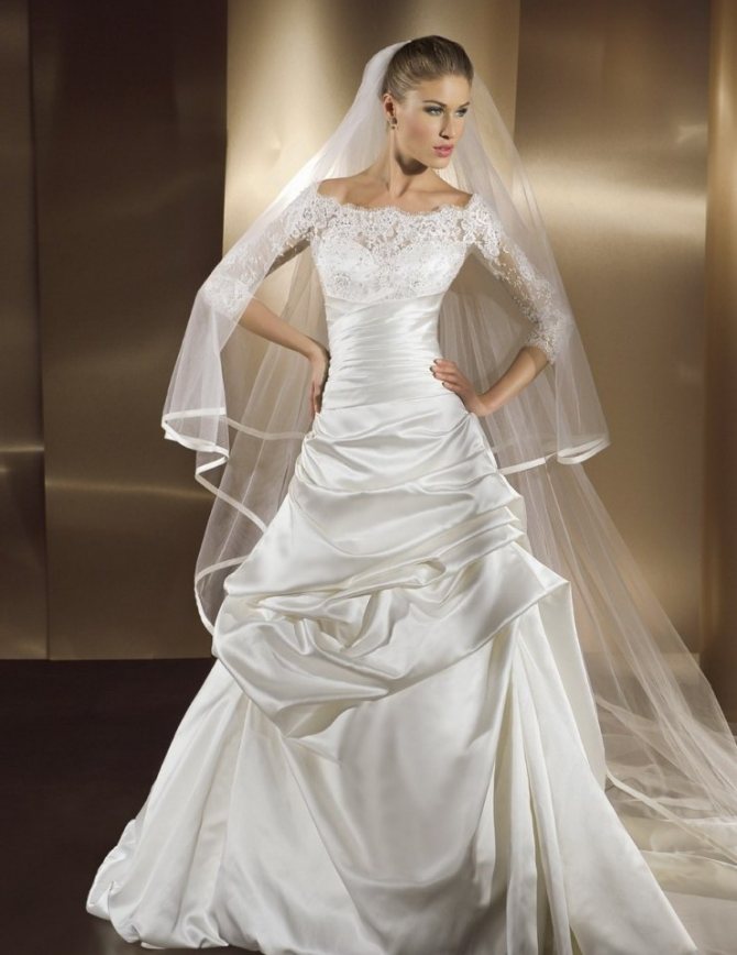 Модель «собор» стоит выбирать в случае, если наряд будет выполнен в классическом стиле и само платье будет со шлейфом.