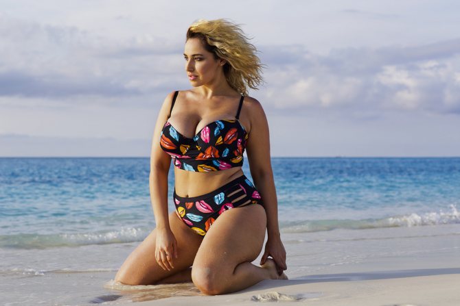 - С гордостью демонстрировать пышную фигуру. Останавливать выбор на купальнике, подчеркивающим грудь и зрительно сужающим талию.