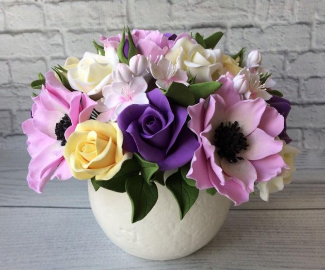 Букеты из полимерной глины имеют преимущества по сравнению с аксессуарами, составленными из живых цветов: