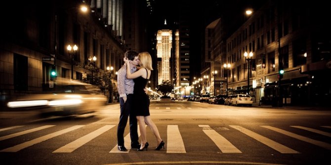 - Ночная Love Story. Фото можно сделать в городе, когда вокруг так много ярких огней, или на природе на фоне звездного неба.