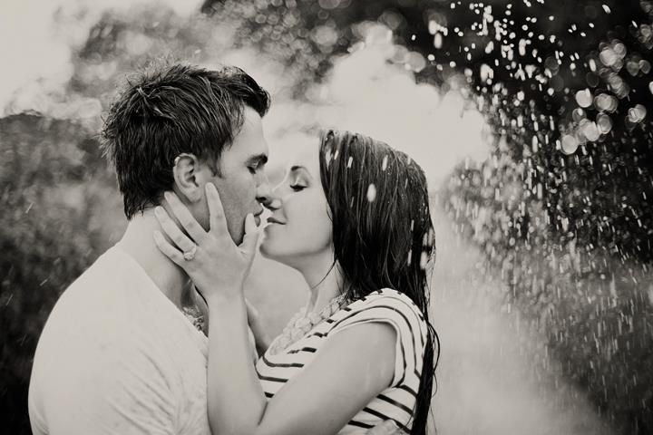 Дождь — идеальные условия для красивых фотографий. Романтичные поцелуи под дождем, попытки спрятаться под одним зонтом, капли дождя в контровом свете, вечерние огни, отражающиеся в мокром асфальте, отражения в лужах… При желании дождь даже можно имитировать при помощи разбрызгивателя, шланга с водой или просто бутылки воды.
