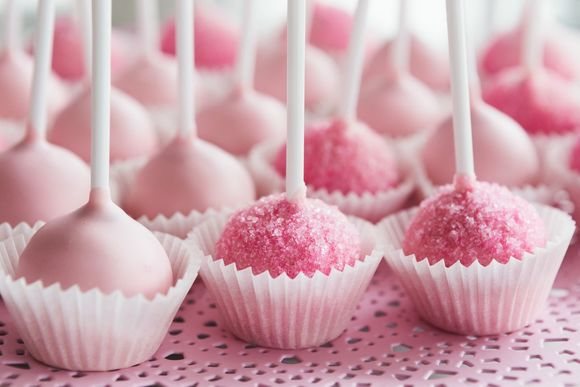 Скатайте шарики, обмакните палочки одним концом в шоколад, вставьте в кейк-попсы и подержите их 10 минут в морозильной камере — это важно, чтобы палочки не выскакивали из пирожных. А теперь окуните палочки в шоколад и обсыпьте розовым сахаром. Поместите кейк-попсы в стакан и подержите их на холоде до полного застывания. Эти вкусные лакомства, которые украсят любой стол со сладостями, обычно уносят с собой домой, поэтому делайте побольше!