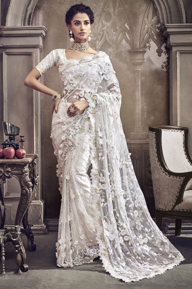 Варианты декора свадебного сари
