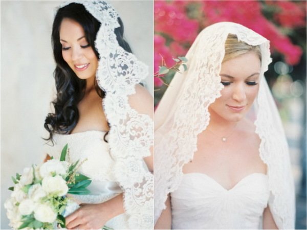 Фата испанка отличается своей необычной круглой формой. По сравнению с традиционным вариантом, изготовленным из тюля, испанская фата выделяется своей роскошью – изысканное кружево украшает ее края, но бывает что и весь предмет наряда выполнен из кружевного материала. Носится она по-разному, ею можно закрыть лицо либо закрепить на макушке.