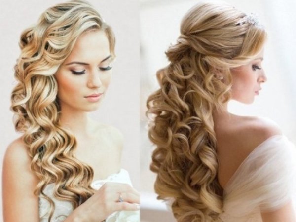 Сами волосы при этом могут быть и прямыми – в этом случае необходимо позаботиться о гладкости и зеркальном блеске, или завитыми. Во втором варианте допустимо вплести в кудри какой-нибудь аксессуар – нить, бусы или маленькие цветочки. Закрепить лежащую на плече волну можно как невидимками и лаком, так и изящным гребнем.