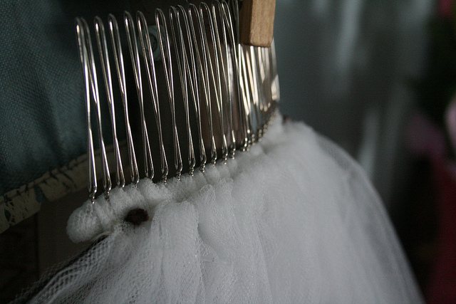 Здесь все будет зависеть от густоты и тяжести волос, объема прически и длины фаты. Для легкой фаты средней длины подойдет гребешок с небольшим количеством зубцов (около шести). Чем тяжелее и длиннее фата, тем надежнее и больше должен быть гребешок