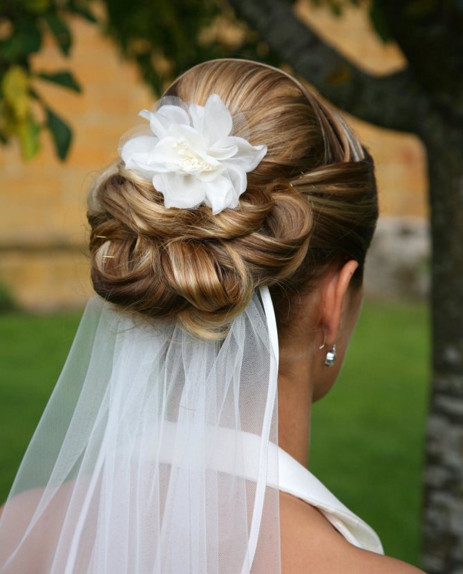 Предпочтение отдают серьгам, небольшим колье или браслету, а волосы остаются не декорированными, что нарушает гармонию. Именно поэтому в моду снова входит свадебная причёска с фатой как способ завершить образ новобрачной.