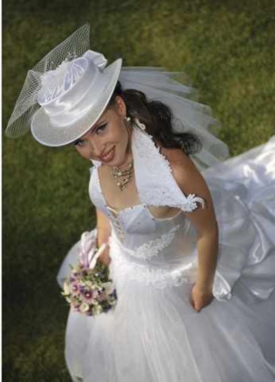 - если, помимо фаты, предполагается использование лёгкой шляпки или венка, зафиксировать её можно непосредственно к ним;