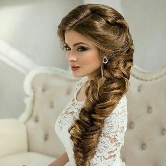 Достаточно долго остаются в моде свадебные греческие косы, сделанные набок. Часто их оформляют как высокий хвост, сделанный на макушке и обвитый множеством завитых локонов и небольших косичек. Шикарно смотрятся также сложные косы из 5–6 и более прядей. В их переплетении уютно разместятся различные заколочки, жемчужинки и другие украшения.