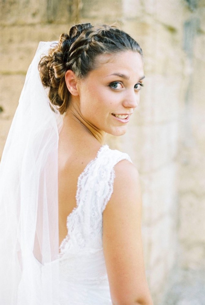 Если во время свадьбы понадобится снять фату, и какое-то время побыть без нее – не забудьте замаскировать косичку волосами перед ней.
