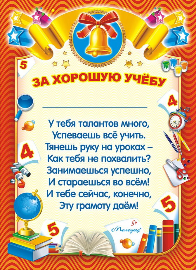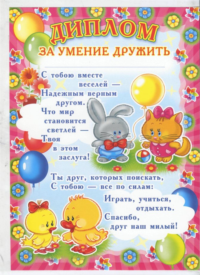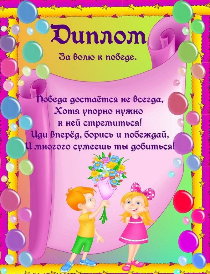 Выпускной в школе и в детском саду отличается только возрастной группой детей. В остальном, праздники схожи между собой: поздравительная часть, концерт, и куда же без номинаций? Шуточные грамоты и дипломы вы найдете ниже по тексту. Просто кликните по нужной картинке и распечатайте ее на цветном принтере.