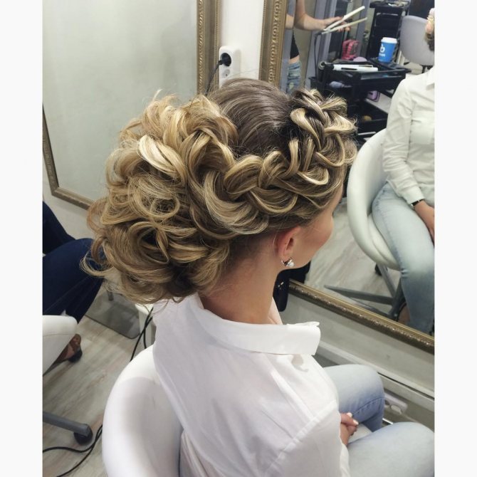 Например, в прическе на фото слева локоны завиты, а коса предназначена для их формирования.