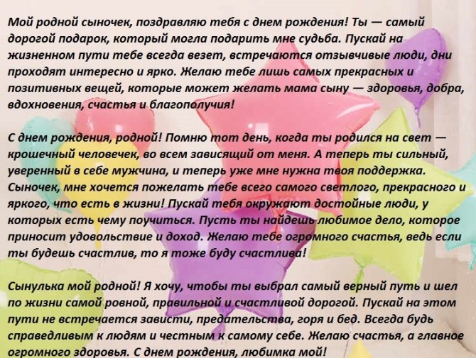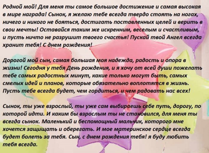 Слова мамы на дне рождения сына — поздравления в прозе и стихах: