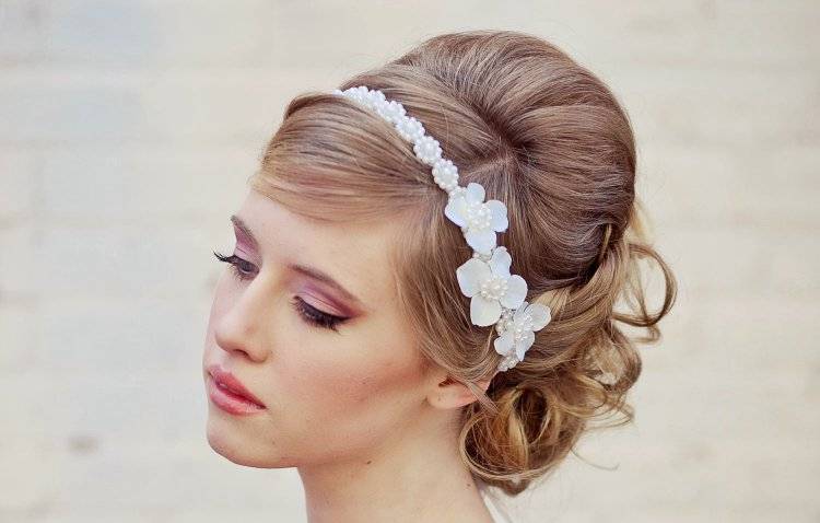 Невестам – обладательницам челки рекомендуется придерживаться дополнительных рекомендаций, дабы не превратить свою прическу в безвкусицу. Допустить того, чтобы украшение оказалось на линии роста волос – нельзя. Для этого нужно: