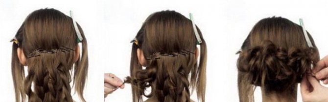 Для создания такого типа причесок понадобятся все те же материалы, что и для пучков, но с одним условием: сетчатый валик нужно распустить, чтобы он представлял собой длинную сетку в виде мягкой трубки, затем свернуть и позже зафиксировать у основания хвоста.