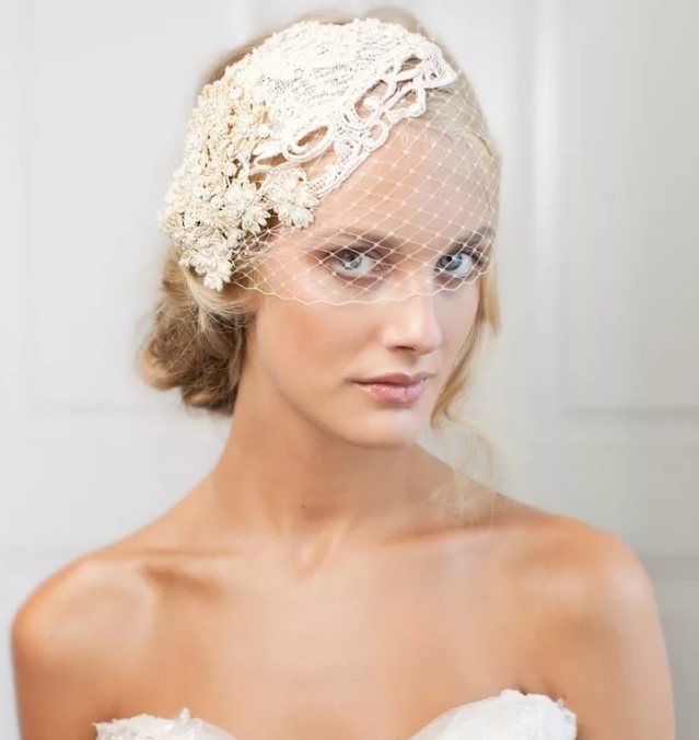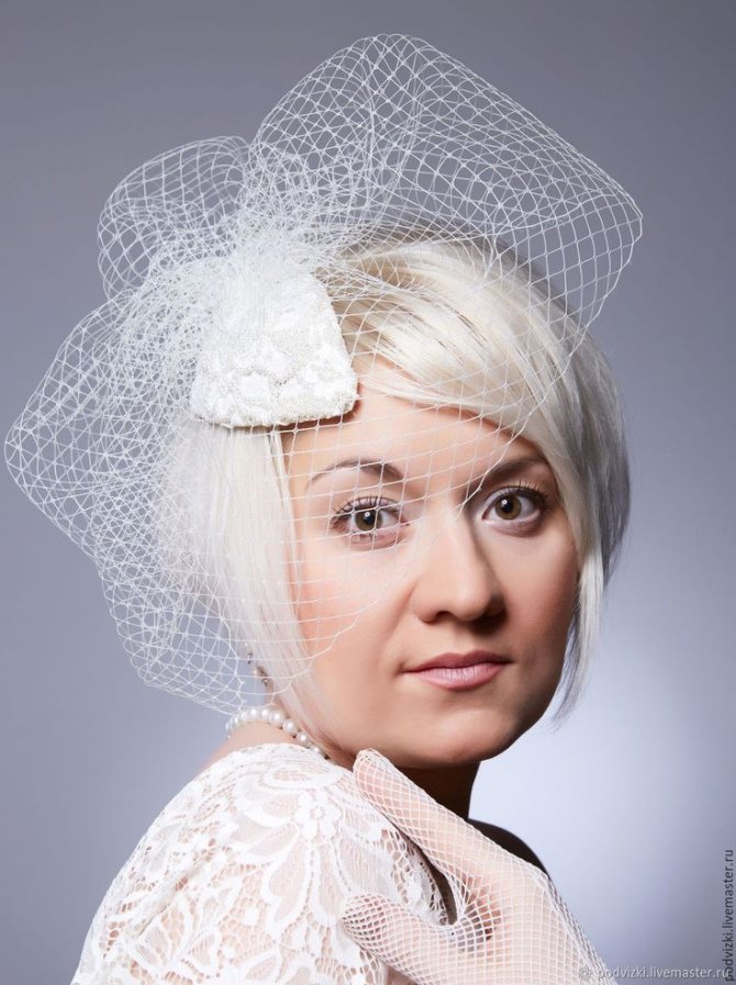 Самый распространенный и классический вариант современной вуали – сетка с крупными или мелкими ячейками. Из материалов также используют тончайший газ, прозрачную органзу или кружево