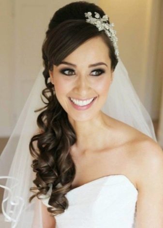 Именно этим обусловлена популярность свадебных причесок с распущенными кудрявыми хвостами и длинными диадемами.