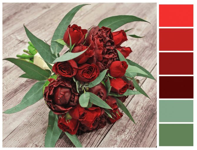 Бывает, что клиент просит сделать красный букет на печальное событие, чтобы в красных цветах выразить свою грусть. Тогда флорист сможет предложить ему более темные оттенки красного цвета.