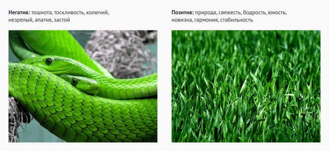 Характеристика значения чистого зеленого цвета Чем больше в зеленом цвете белого оттенка, тем зеленый цвет выглядит нежнее. Чем больше черного — тем более вызывающе выглядит зеленый цвет Чем больше серого цвета в зеленом, тем он становится тише и приглушеннее