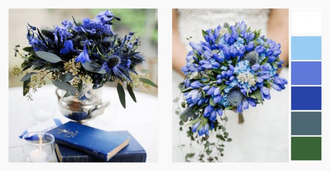 Букет в синих оттенках в руках невесты подчеркнет важность и глубину события