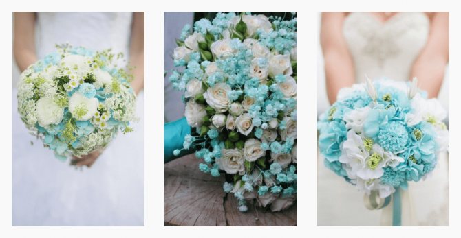 Оттенки бирюзового цвета добавляют свежести в свадебные букеты