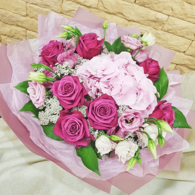 Букет в нежно-розовых тонах дарят молодым девушкам и девочкам, также он подойдет для подарка паре на годовщину их розовой свадьбы.