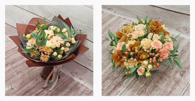Например, клиент хотел бы выбрать букет для мамы на день рождения. Ему хотелось бы передать теплоту, уют, здоровье, чтобы не было ни капли негатива. Оттенок оранжевого цвета, который уходит в теплоту и светлоту, идеально передает это послание.