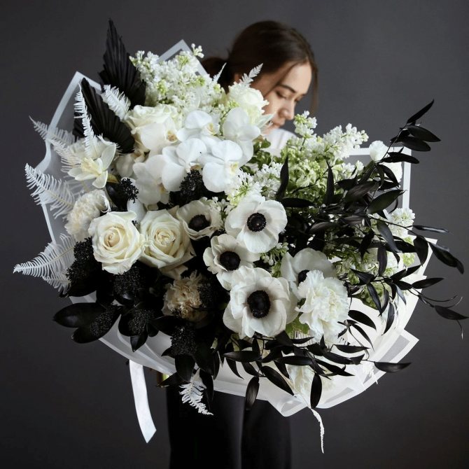 А вот с общепринятыми стереотипами, которые связаны с цветом, можно работать. Можно рассказать клиенту, что черный цвет не всегда считается траурным. Сейчас он меньше используется в ритуальной флористике, чаще букеты черного цвета заказывают для престижных вечеринок. Клиенту может понравиться такое решение, и он уйдет на модную вечеринку с прекрасным букетом черных цветов.