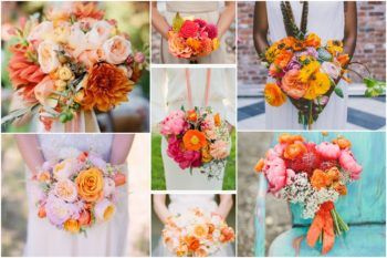 Самое популярное сочетание для осенней свадьбы – использование жёлтого, оранжевого и красного оттенка. Красиво выглядит дуэт зелёных и красных тонов. Чаще всего композиции в этих цветах составляют из астр, гербер, анемонов и гортензии. Идеально подходит для осенней церемонии и сочетание коричневого и оранжевого цвета.