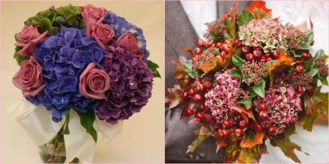 Зеленые же нотки добавляют с помощью гортензий, георгин, хризантем, а также различных травянистых растений – это может быть амарант, молюцелла, эвкалипт.