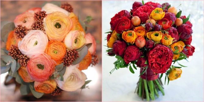 В России их часто называют лютиками, имеют легкий приятный аромат, начинают цвести в конце октября. У них очень большая цветовая гамма, бывают розоподобными и пионоподобными. Ранункулюсы – это олицетворение власти и могущества.