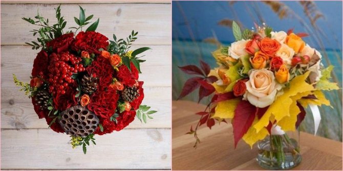 Как известно, все букетики выглядят по-разному и это не только благодаря цветам, но и их форме. Ниже мы рассмотрим самые распространенные осенние варианты композиций.