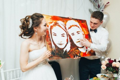 - Если вы люди творческие, то родители жениха наверняка высоко оценят, если вы подарите им собственноручно написанную картину или фотоколлаж на память. Однако старайтесь при этом избегать шаржей, особенно если вы знакомы друг с другом недавно.