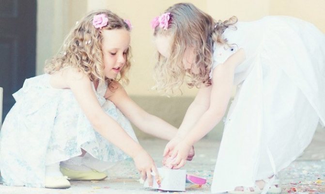 Дети могут стать центром торжества. Они могут разбрасывать лепестки роз, девочки – нести фату невесты, мальчики – подать подушечку с кольцами с ответственный момент бракосочетания. Такие обычаи характерны для западных стран, но нередко встречаются и в остальных.