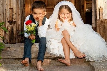 Дети на свадьбе – это главные гости. Родители наряжают девочек как маленьких принцесс, делая их похожими на невест. Красивые пышные платья смотрятся на них очень мило. Мальчиков одевают в строгие костюмчики, чтобы они были похожи на женихов. На свадебном торжестве дети ведут себя раскованно и расслаблено и являются центром внимания всей присутствующих. От маленьких гостей все ожидают произнесения поздравлений: это может быть речь, песня или стишок. Не важно, какая форма произнесения речи была выбрана, из уст малыша она звучит непринужденно, мило. Многие поздравления от детей на свадьбе – это простые, незатейливые или даже иногда смешные варианты. Иногда дети даже ставят целую сценку или исполняют песенку. Давайте рассмотрим, какое поздравление на свадьбу от детей можно использовать на торжестве.