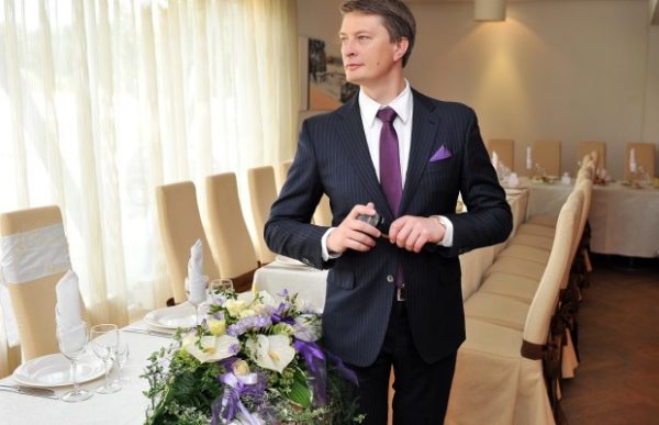 Стиль casual довольно популярен среди новобрачных – необходимые элементы гардероба можно подобрать в обычном магазине, а сам наряд является удобным и комфортным. Наденьте рубашку из натурального материала в светлых тонах с элементами сиреневого цвета, дополните наряд светлыми брюками, удобными кожаными ботинками на шнуровке или липкой застежке спортивного фасона, добавьте шика при помощи подходящего шейного платка или галстука – в такой одежде вы сможете без труда провести весь день, принять участие в необычной фотосессии, активных мероприятиях.