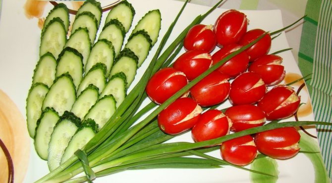 Само оформление блюд должно быть красивым и соответствующим поводу, по которому все собрались за столом в этот день. При помощи карвинга можно украсить любой салат, а нужно для этого немного: фигурные ножи и немного фантазии.